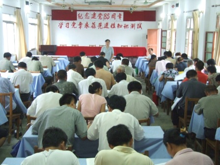 7月21日下午,龙亢农场在大会议室举办了纪念建党85周年学习党章永葆先进性知识测试。