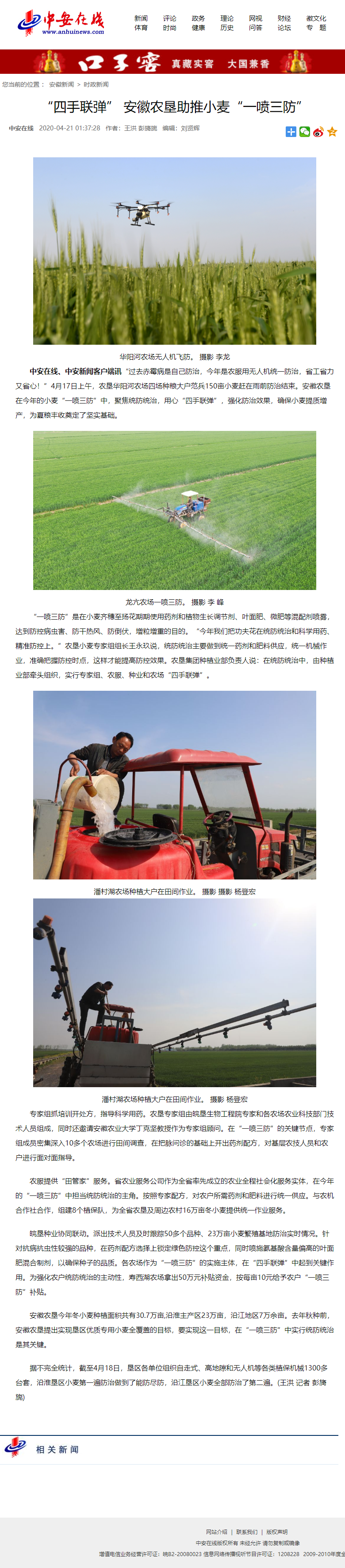 中安在线:“四手联弹”,安徽农垦助推“一喷三防”