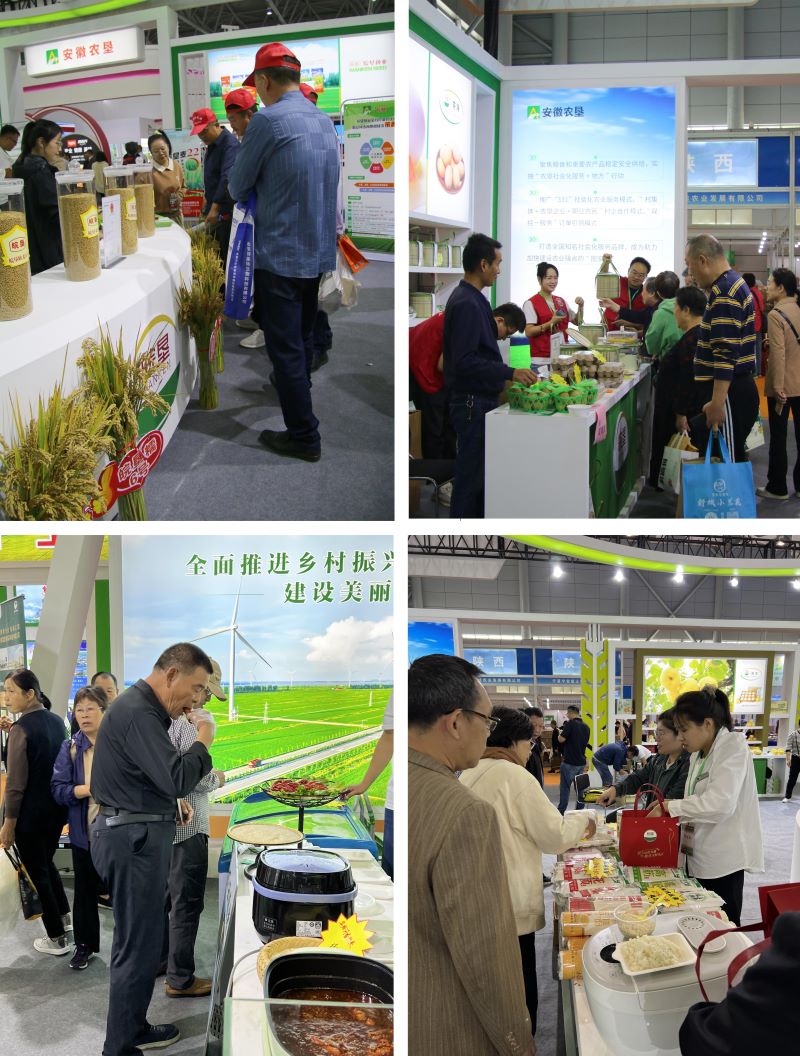 10月13日-15日,中国安徽名优农产品暨农业产业化交易会(2023·合肥)在滨湖会展中心盛大举行。安徽农垦以“强科技,大基地,全产业链”为主题,现场设科技创新、种业振兴、乡村振兴、千亿斤粮食产能提升行动、农垦社会化服务+地方行动、农业走出去等专题,组织垦区13家企业参展,展示了倮倮大米、雁湖面粉、皖垦菜籽油、华阳河小龙虾、安禽鸡蛋、茶海熏香鸡、敬亭绿雪茶叶、青草湖黄酒等75种特色农产品。