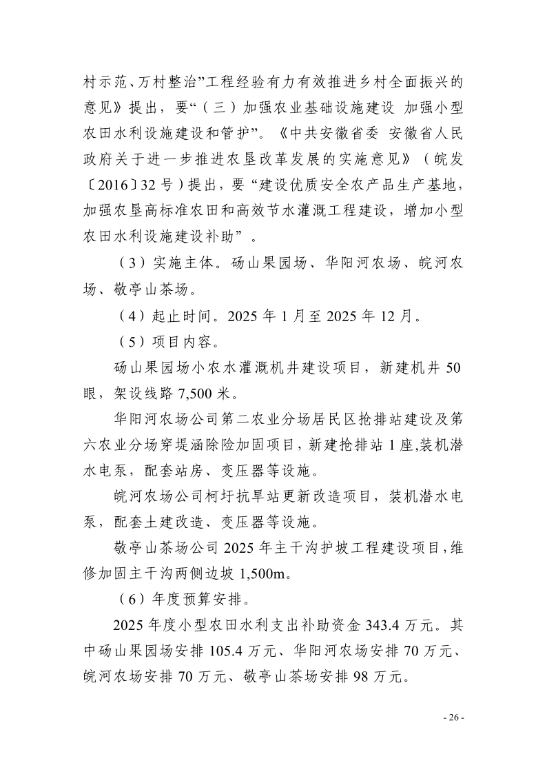 安徽农垦集团:安徽省农垦事业管理局2025年度项目支出绩效目标