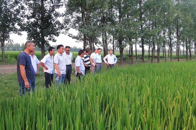 823寿西湖农场副场长袁辉率农技服务中心、各分场负责人和种粮大户代表,到水稻田头举行田管现场会。