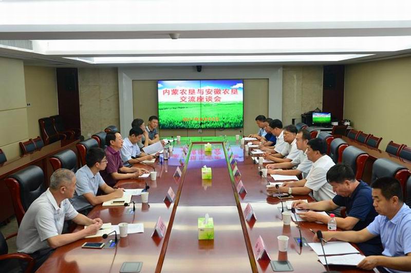 823,内蒙古巴彦淖尔市农垦局局长香建军、乌拉特前旗旗委副书记菅江左率该旗5个农场负责人一行来安徽农垦考察交流。安徽农垦集团总经理刘超、副总经理李家堂及有关部室负责人参加座谈会。