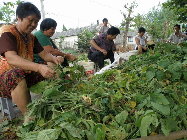 9月16日,大圹圩农场农业第三管理区农业承包户李永铭,请了七八个人来帮忙摘豆夹。据了解,他家承包的50亩地田埂上种植的大青豆,这一季能收2000多斤的大青豆夹,按现在市场批发价卖,小田埂一季就创收近3000元。眼下正值大青豆上市季节,家庭农场在田埂地角边种植的大青豆很受市民青睐,最近一段时间,各户利用农闲时间,互帮互助采摘大青豆夹销售创收入。